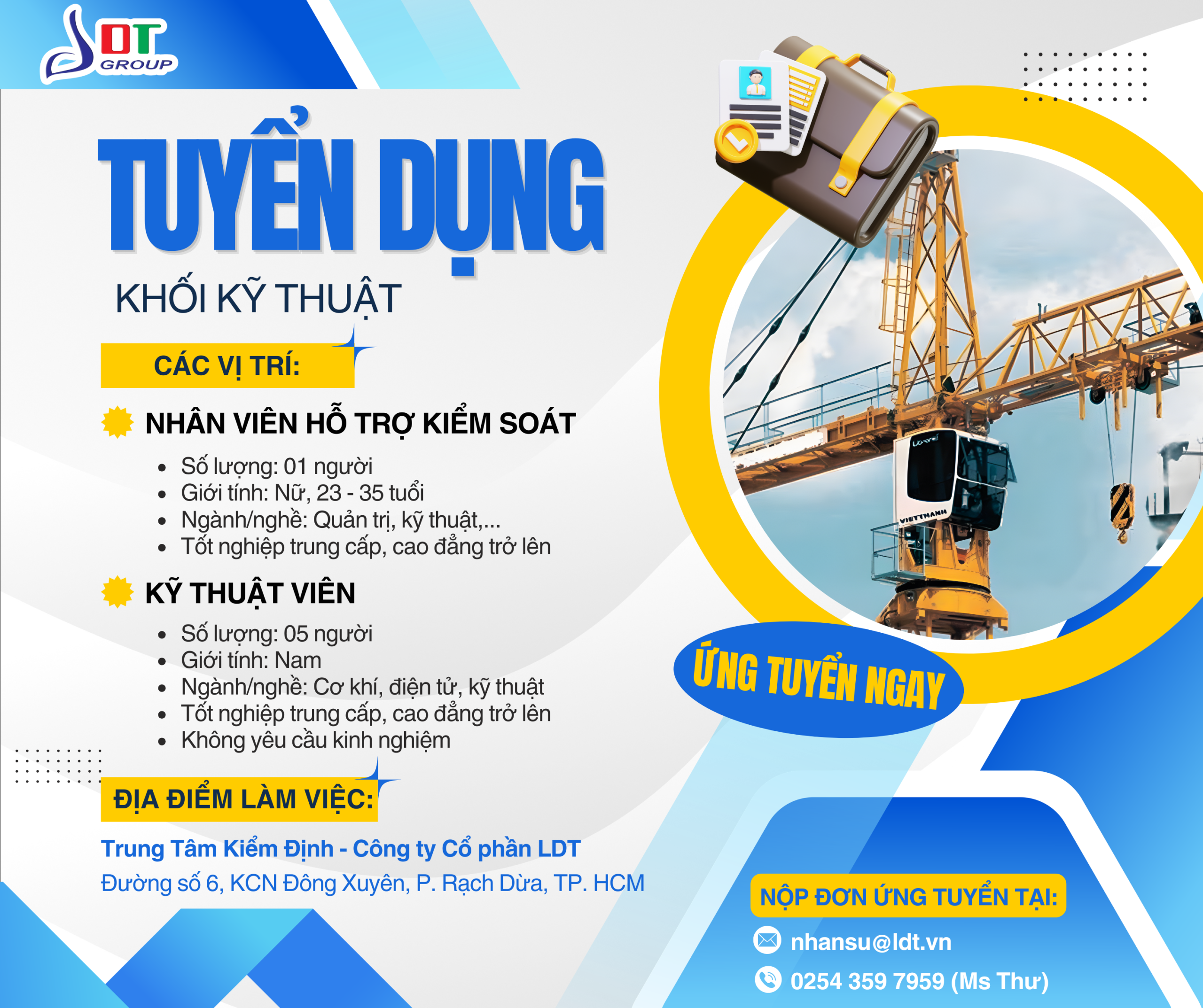 LDT TUYỂN DỤNG NHÂN VIÊN HỖ TRỢ KIỂM SOÁT VÀ KỸ THUẬT VIÊN THÁNG 4/2026