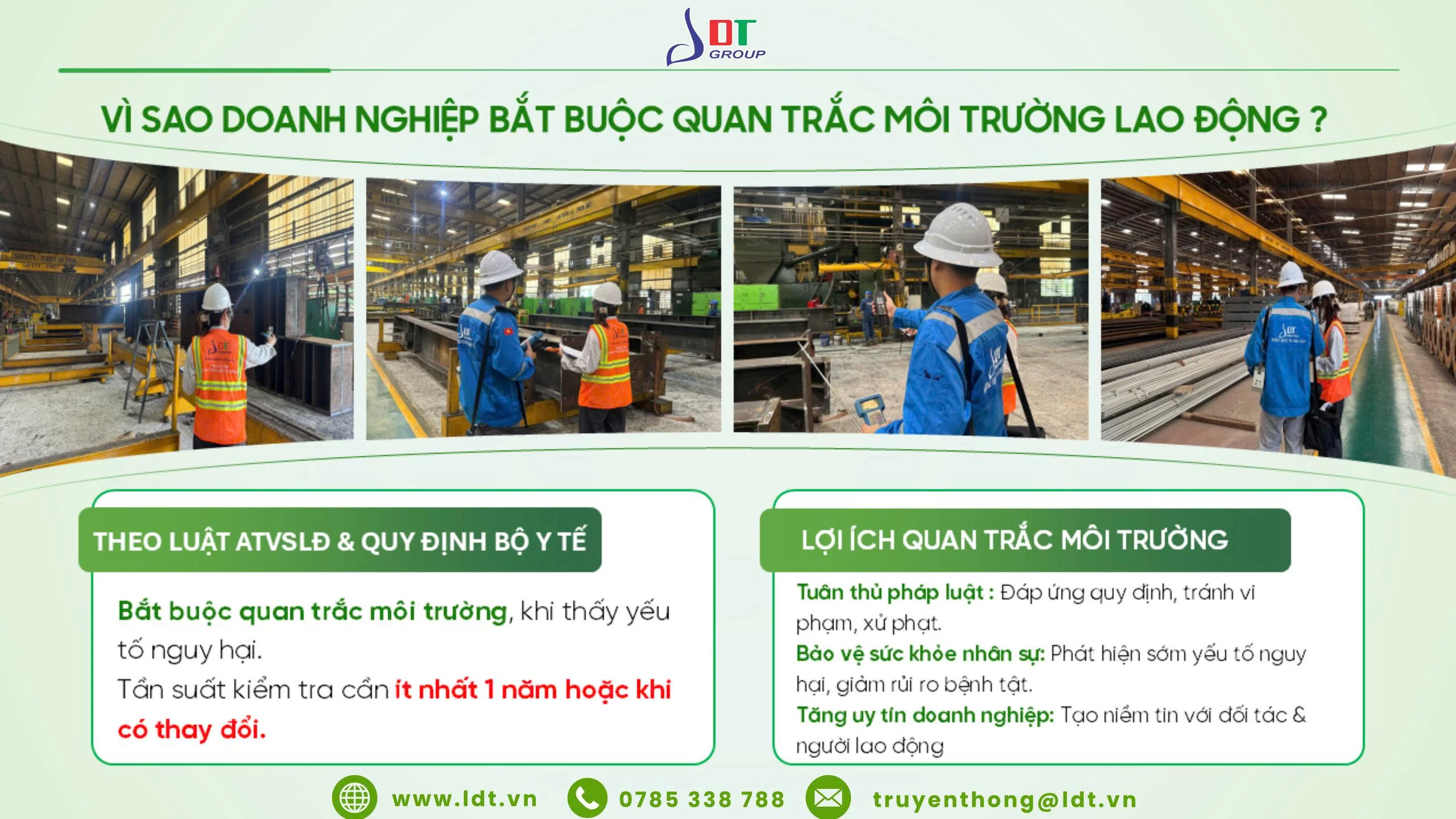Công ty cổ phần LDT là đơn vị được cấp phép thực hiện dịch vụ Quan trắc MTLĐ theo Công văn 5700/SYT-NV của Sở Y tế tỉnh BR-VT